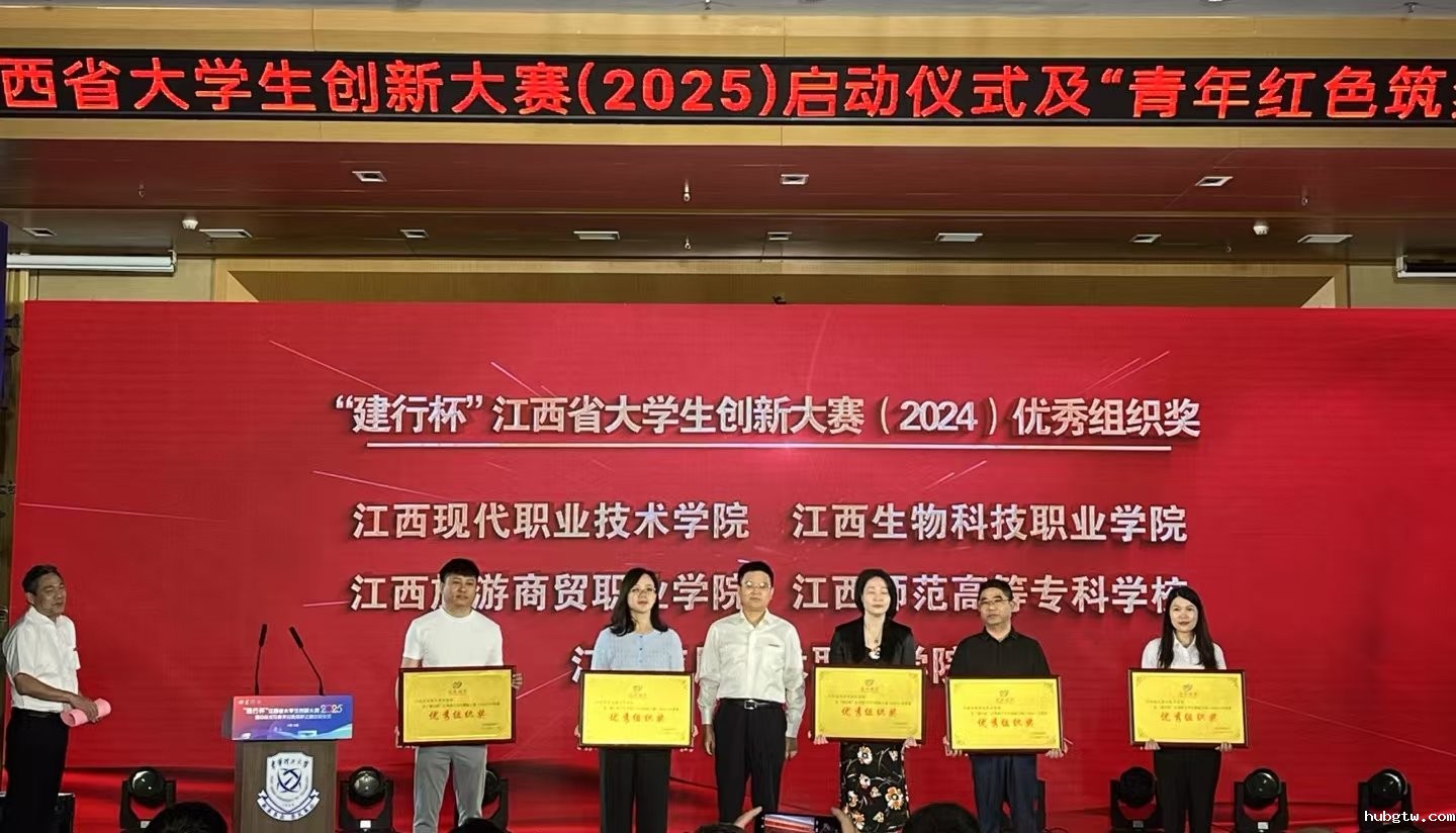 颁奖仪式结束后,五所高校分享了经验。会议举行了“建行杯”江西省大学生创新大赛(2025)的启动仪式和红旅活动出征仪式。