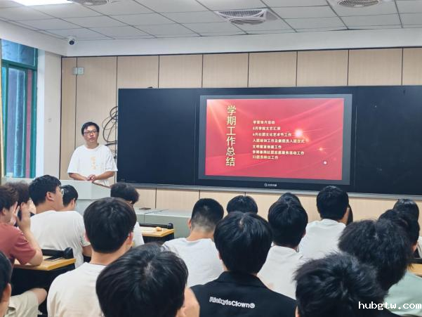 紧接着,团总支书记进行总结发言。他对本学期团学工作成果给予肯定,指出在思想引领、活动组织、服务同学等方面都取得了显著进展,各项任务高效完成,活动影响力逐步扩大。同时,要求团学干部要牢记责任与使命,在学习和生活中以身作则,成为同学们的表率。要坚定理想信念,加强思想政治学习,努力成为有理想、敢担当、能吃苦、肯奋斗的新时代好青年。此外,他还鼓励大家勇于创新、敢于担当,积极探索新工作方法,提升工作效率与质量,为团学工作注入新活力。