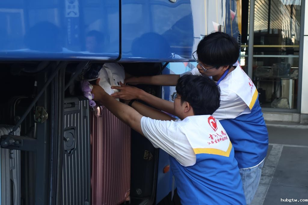 迎新期间,天刚破晓,师生志愿者便分赴南昌火车站、南昌西高铁站、南昌东高铁站、徐坊客运站等6个接站点。各站点分别设立秩序维护组、引导服务组、机动服务组、团员关系转接组及校园广播组,分工协作,层层衔接,确保迎新流程顺畅高效。志愿者们高举引导牌,以热情的笑容和耐心的指引,第一时间为新生及家长提供帮助,或搬运行李,或答疑解惑,或引导乘车,虽汗水浸透衣衫,仍始终保持积极状态。