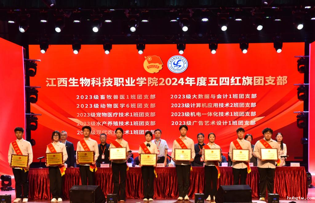 院党委委员、副院长王加文在表彰大会上宣读了《关于表彰2024年度五四红旗团总支、五四红旗团支部、优秀共青团干部、优秀共青团员、优秀返家乡社会实践大学生的决定》,机电工程系团总支、动物科学系团总支被评为“五四红旗团总支”;2023级畜牧兽医1班团支部等9个团支部被评为“五四红旗团支部”;李高翔等181人被评为“优秀共青团干部”;杨舒雅等122人被评为“优秀共青团员”;金晶等37人被评为优秀“返家乡”社会实践大学生。与会院领导向获得荣誉的集体和个人代表颁发了奖牌和荣誉证书。优秀团干代表陈柄儒同学作了发言。