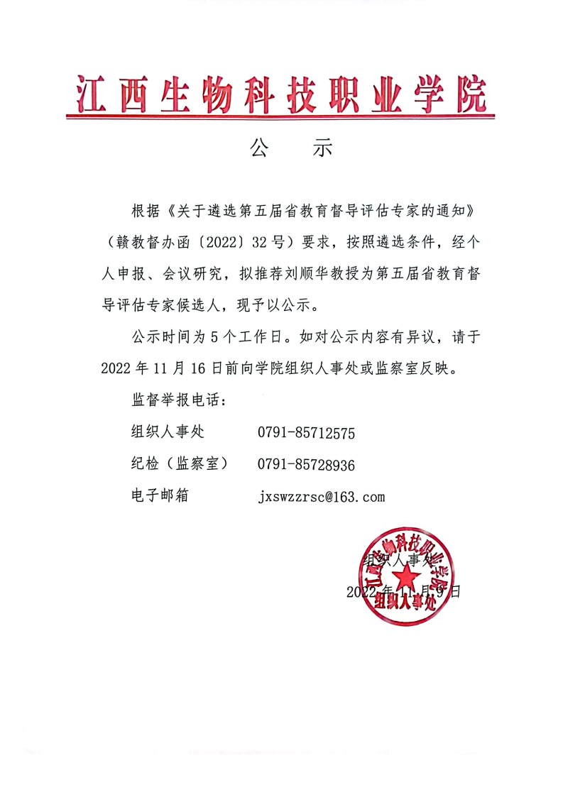 竞技宝app官方版下载关于拟推荐刘顺华教授为第五届省教育督导评估专家候选人的公示