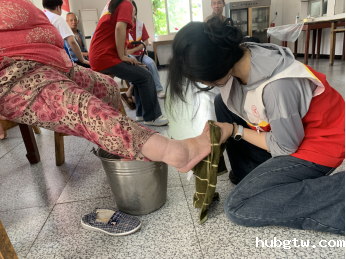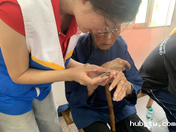活动当天,团队成员带着精心准备的慰问品和满满的热情一早便来到敬老院。一进院门,大家便迅速行动起来,分工有序地开展各项服务。在开场温馨的交流互动中,队员们围坐在老人身边,亲切地拉着爷爷奶奶的手,耐心倾听他们讲述过去的故事和生活中的点点滴滴。与此同时,队员们也用通俗易懂的语言和爷爷奶奶们分享起自己的专业和校园里的新鲜趣事,现场气氛温馨愉悦,欢声笑语不断。在队员与老人们聊天的同时剪指甲和洗脚服务也在同步进行着。队员们有的拿出提前准备好的指甲钳,逐一地为老人们修剪指甲。他们动作轻柔,耐心细致地将每一个指甲都修剪得整齐圆润,还不时询问老人是否感到不适。有的队员则忙着烧水打水,他们认真地测试水温,细心地为老人清洗并擦干双脚。感受到队员们真诚的态度,老人们脸上也洋溢着幸福的笑容,纷纷对同学们的服务表示感谢。
