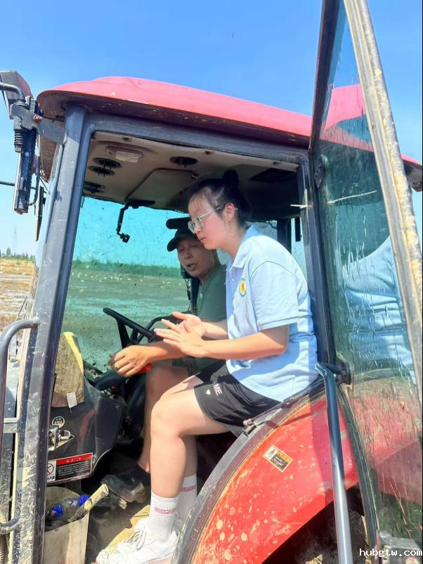 当天的最后一站,实践队来到田间,亲身体验农机在农业生产中的应用。在村民的指导下,队员们操作起拖拉机、插秧机等农机具。在田间作业的过程中,队员们深刻体会到了农机对于提高农业生产效率的重要性,也更加明确了自己在农机领域深入学习和研究的方向,同时结合自身所学专业知识就农机操作和农机设备维护等方面问题与村民们进行了深入交流探讨。机电工程系党支部书记在一旁观看并指导,他欣慰地说:“看到同学们积极参与,对农机这么感兴趣,相信未来农业发展一定会越来越好。”