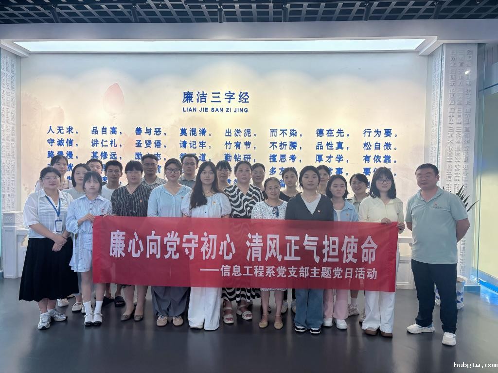 为进一步强化党性教育,推进全面从严治党向纵深发展,7月6日,信息工程系党支部组织全体党员前往南昌市红谷滩长天廉文化主题公园,开展"廉心向党守初心,清风正气担使命"主题党日活动。